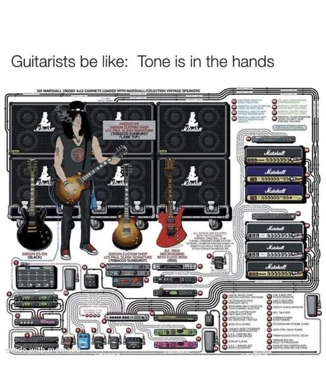 I'm sorry, but I don't care who the hell you have playing the guitar. If they turn the guitar knob all the way to 10, the tone knob to 10, and their amp volume/master at max, then I would agree it's harder to tell the difference. But the greats did not and do not play instruments like this.