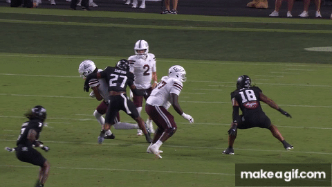 I can't tell what looks more painful. Getting folded in half like a chair, or hooking your arm around someone like that at SEC game speed.