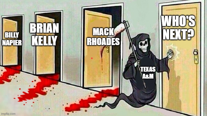 Funny cartoon. But why do we think that A&M had anything to do with Rhoades taking a leave? Surely you don't think because a few Aggies feel disrespected by the CFP rank that this is some consequence.