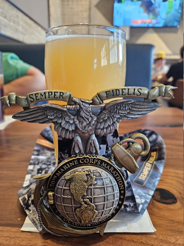 Post-Marine Corps Marathon beer! Set a goal a year ago to break 5 hours. Just snuck under at 4:59:55!