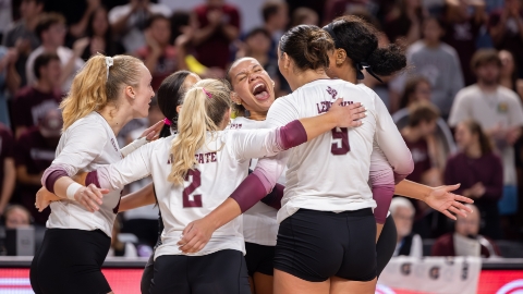 The Aggies came out hot to start set four, taking an early 7-2 lead after a 6-0 run. Even though the Crimson Tide showed signs of fight, the Aggies were able to remain in control, cruising to an 18-12 lead. Two consecutive aces from Alabama brought them back in the game, but the Aggies held on to take the set 25-19 and match 3-1. A .350 hitting percentage gave the Aggies the edge, while Hans recorded another six.