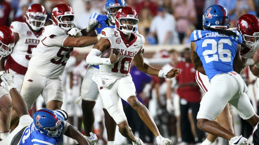 5. Taylen Green, Arkansas, QB: Leads the nation in total offense. Last week, he passed for 305 yards and a touchdown in a 41-35 loss to Ole Miss. Overall, he has passed for 866 yards and rushed for 307.