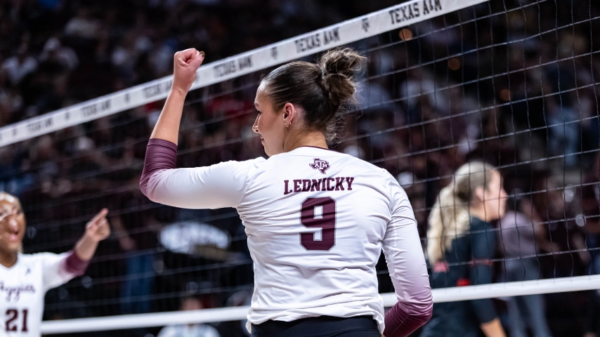 Lednicky, a now four-time All-SEC honoree, continues her dominant march through the A&M record books. With 320 kills and an effective .312 hitting percentage this season, she enters the postseason as one of the 14 semifinalists for AVCA Player of the Year.
